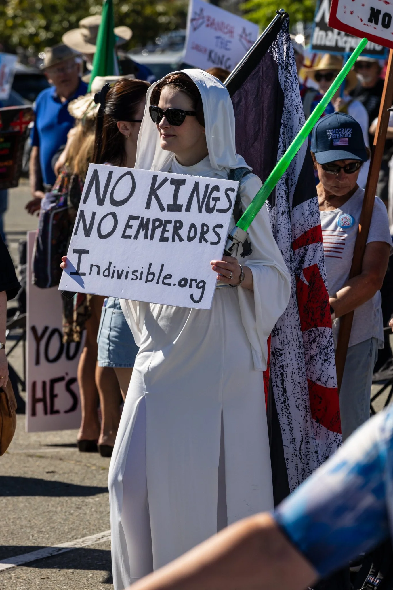 For this third nationwide protest, the range of issues highlighted by protesters is staggering, including unchecked ICE criminality, ongoing war crimes, Epstein Files yet to be released, the trampling of civil rights for LGBTQ+, women, immigrants, and the administration’s gaslighting about the economy. Each No Kings Day has grown as this regime becomes further mired in unconstitutional corruption and incompetence, and now a historically unpopular war. To see people present and loud with humor, kindness and camaraderie, is a tonic.