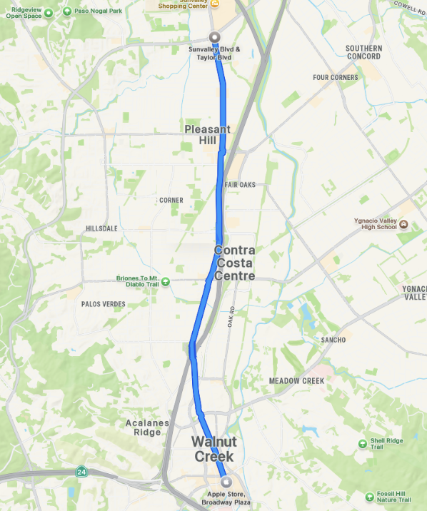 Note: we will mostly need people to sign up for the stretches between Ygnacio Valley Rd. in Walnut Creek, to Boyd Rd. in Pleasant Hill, and from approximately Vivian Dr. in Pleasant Hill to Sunvalley Shopping Center.